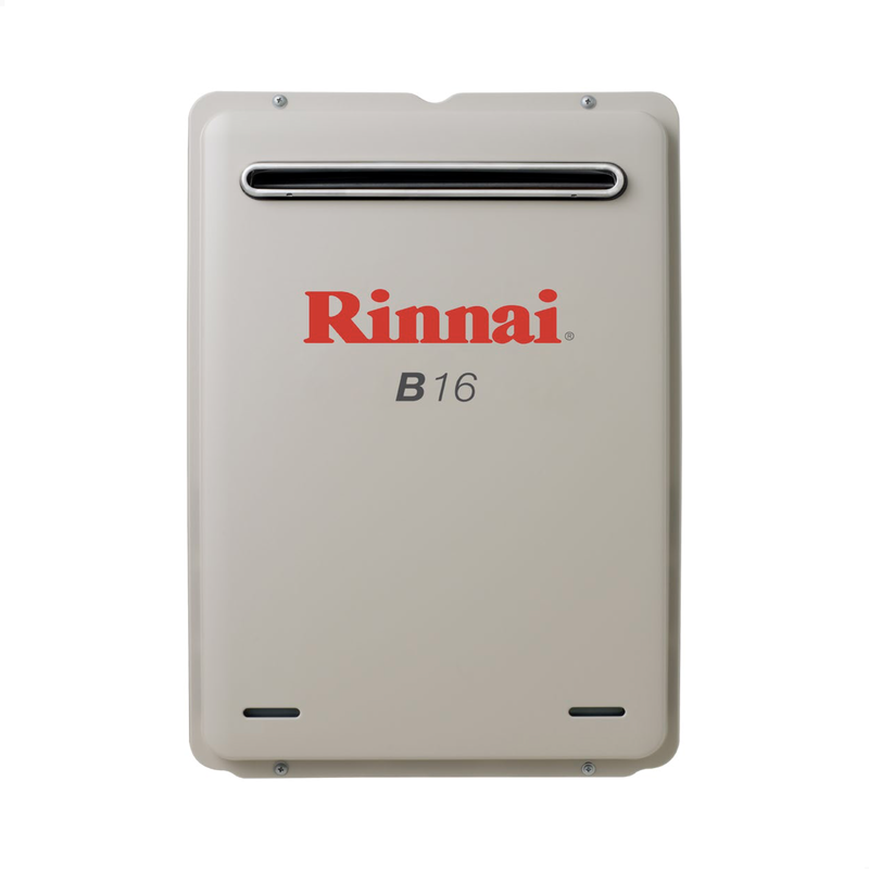 Rinnai B16 16L/min Continuous Flow Gas Hot Water System. Rinnai Continuous Flow hot water systems are the most technologically advanced hot water system available today. These units are designed to be energy efficient, only heating water as it passes through the unit, reducing running costs and greenhouse gas emissions, add to this its compact size which allows it to be installed almost anywhere.
