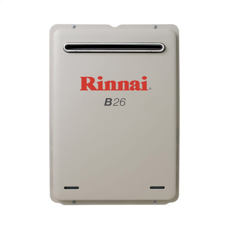 Rinnai B26 26L/min Continuous Flow Gas Hot Water System. Rinnai Continuous Flow hot water systems are the most technologically advanced hot water system available today. These units are designed to be energy efficient, only heating water as it passes through the unit, reducing running costs and greenhouse gas emissions, add to this its compact size which allows it to be installed almost anywhere.